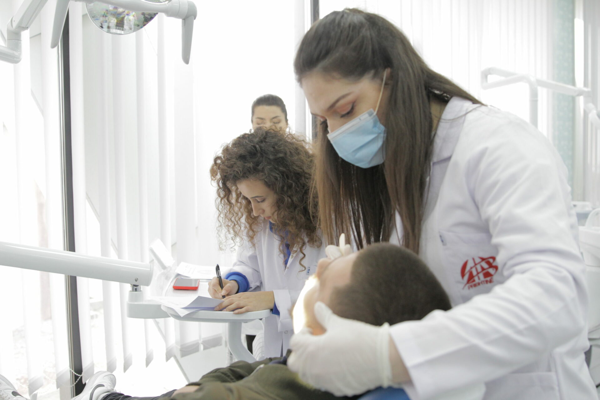 Studentët, stomatologë të ardhshëm, të mentoruar nga mësimdhënësit prof. Mimoza Selmani, prof. Avdyl Shoshi, prof. Teuta Bicaj e prof. Bleron Azizi, po kryejnë ekzaminime orale falas në laboratorët e stomatologjisë në Kolegjin AAB.