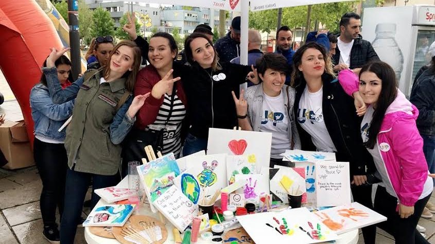 Dhjetëra të rinj iu bashkuan këtë të diel fushatës kundër ekstremizmit “United for Peace” përmes aktivitetit “Lë gjurmë për paqe” që u zhvillua në sheshin “Zahir Pajaziti” në kryeqytet.