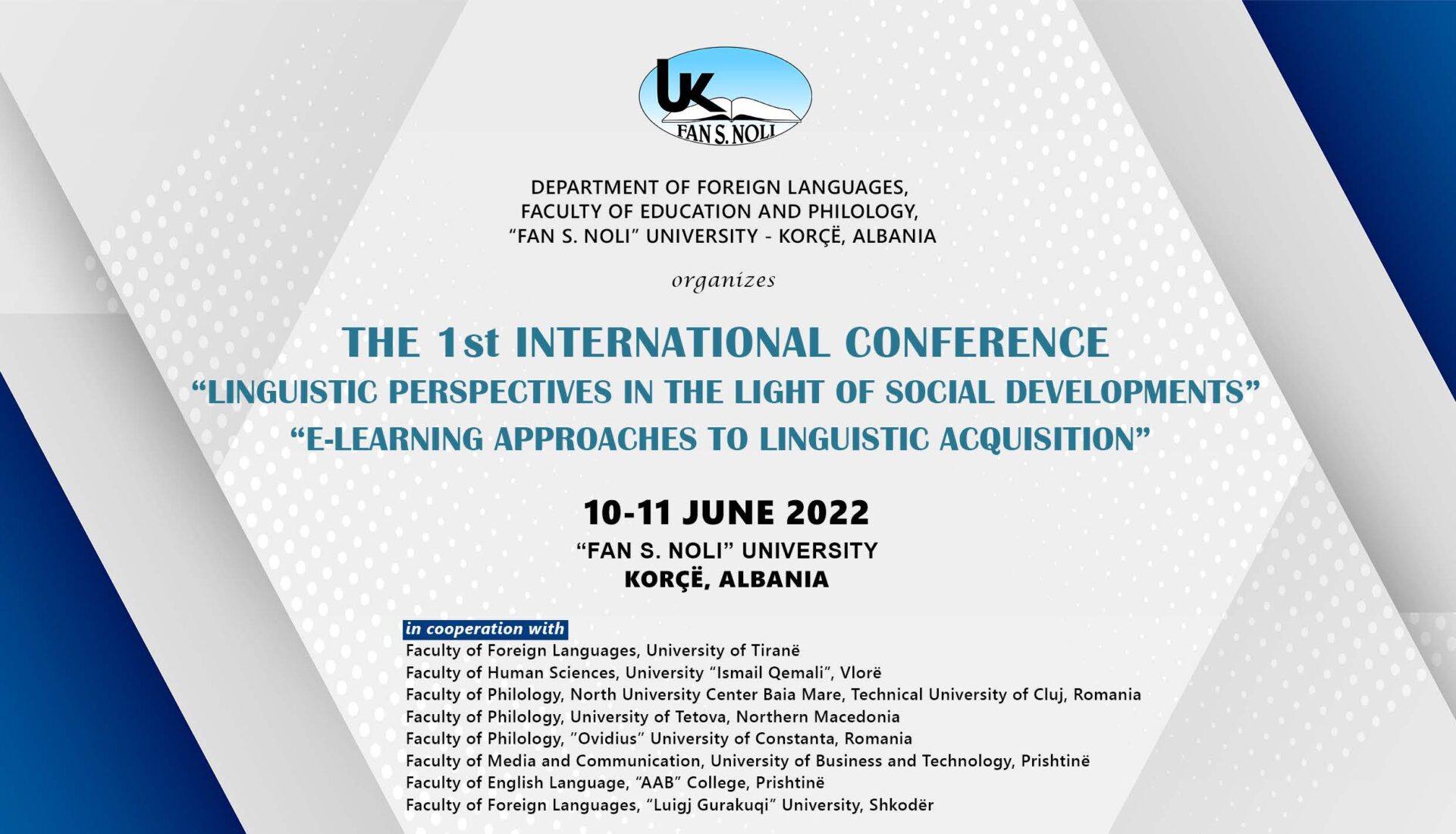 Konferenca “Linguistic perspectives in the light of social developements”; “e-Learning approaches to linguistic acquisition”, organizohet nga Fakulteti i Edukimit dhe Filologjisë, Departamenti i Gjuhëve të Huaja.