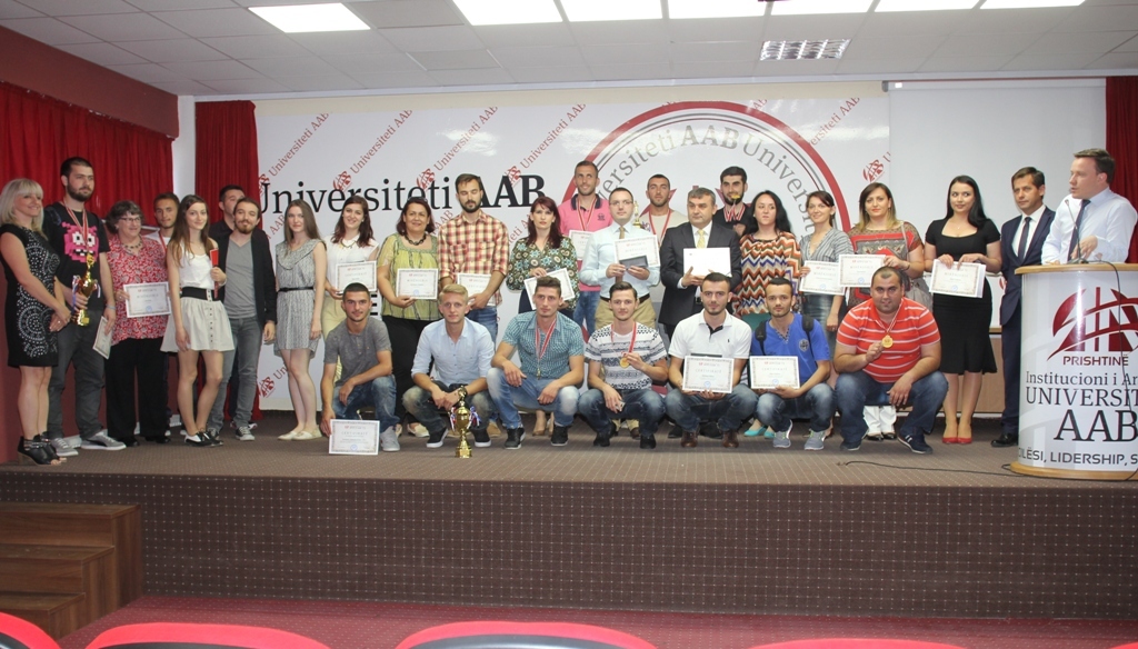 Në ceremoninë e sotme përmbyllëse të edicionit të tetë të Manifestimit “Ditët e AAB-së, 2015”, të gjithë studentëve, fitues në garat universitare në aktivitetet e ndryshme akademike, hulumtuese, artistike e sportive, iu ndanë mirënjohje, medalje dhe nga një tablet.