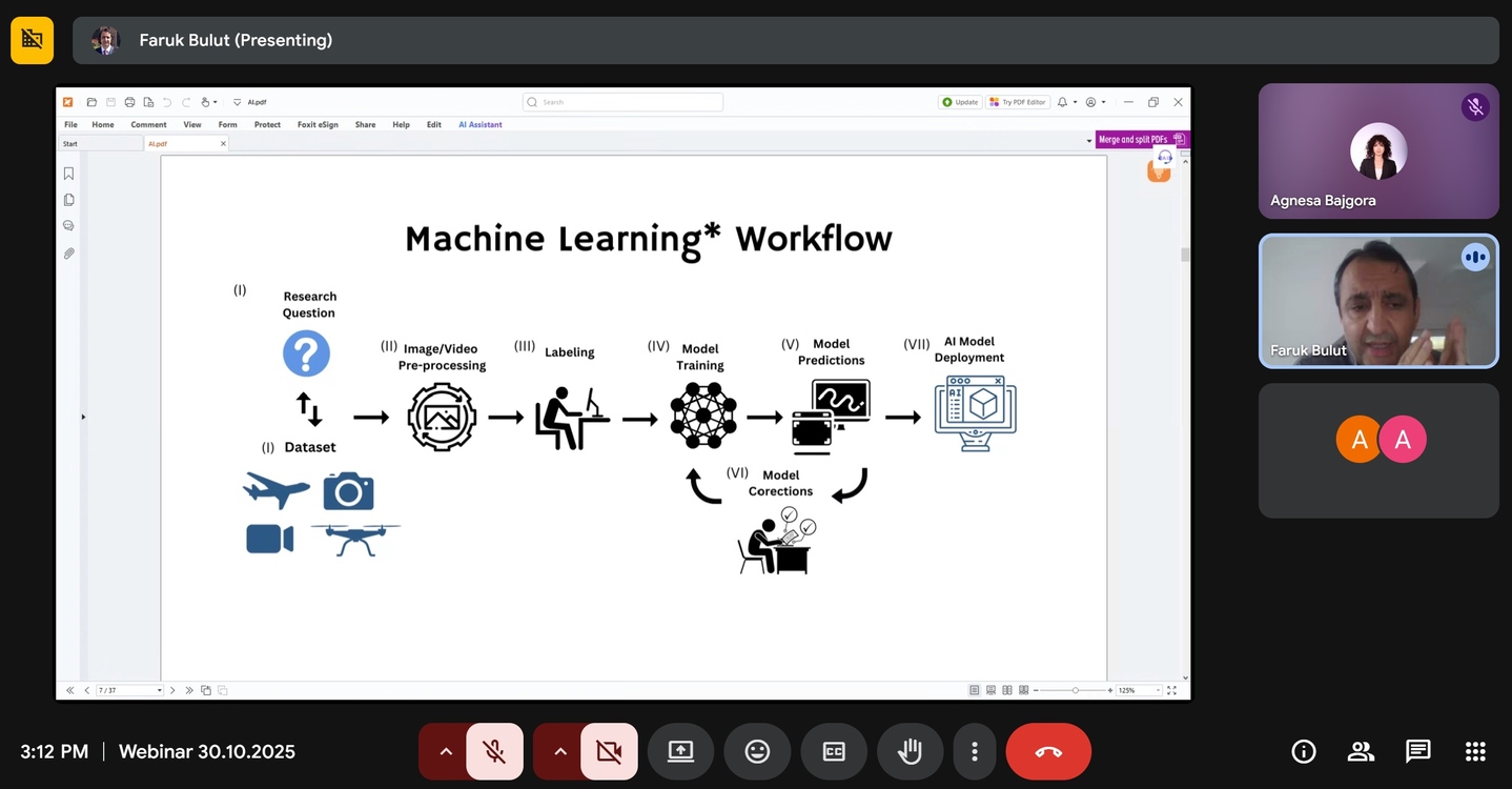 Profesori Bulut, gjatë ligjëratës ndau përvojën e tij në aplikimet praktike të inteligjencës artificiale, ku prezantoi projekte inovative si: Detektimi i tumoreve të trurit përmes analizës së imazheve mjekësore; Zbulimi i zjarreve në kohë reale përmes kamerave CCTV; Njohja automatike e fytyrës me teknika të avancuara të Deep Learning, etj.