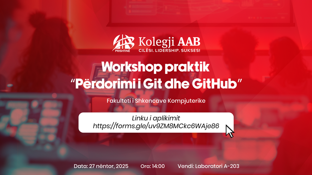 Fakulteti i Shkencave Kompjuterike fton të gjithë studentët e interesuar në një workshop praktik, ku do mësoni rreth përdorimit të Git dhe GitHub, dy nga mjetet më të rëndësishme për zhvillimin modern të softuerit.